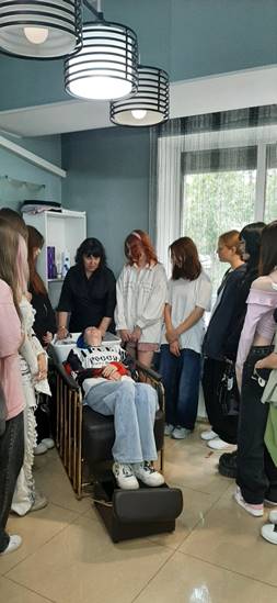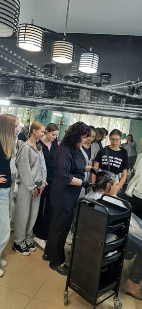 При проведении экскурсии студенты ознакомились с помещениями салона-парикмахерской, оснащением и оборудованием,  с рабочими местами мастеров парикмахеров и мастера маникюра, а также увидели работу мастера с клиентом.