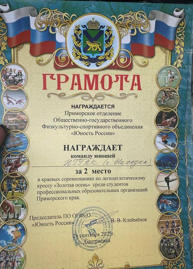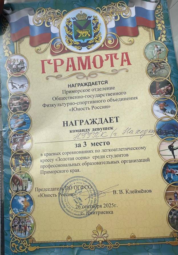Наши спортсмены приняли участие в легкоатлетическом кроссе "Золотая осень", который прошёл среди студентов среднего профессионального образования Приморского края.