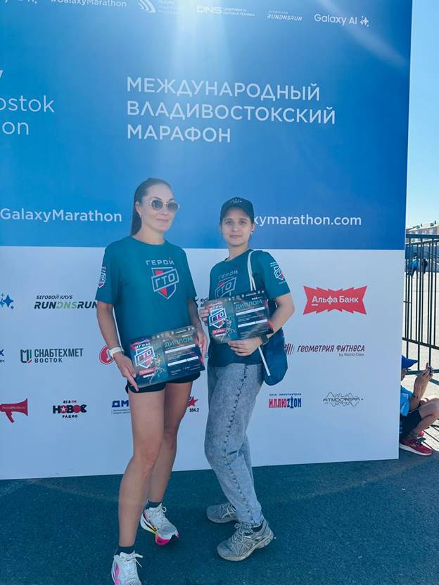 Кроме того, в международном марафоне "Galaxy Marathon", который проходил во Владивостоке, также приняли участие преподаватель физической культуры Иванова Екатерина Анатольевна, студентка группы 1212 Хам Камилла, а также выпускники нашего колледжа Рудницкая Виктория и Солдайкин Евгений, который является участником СВО.