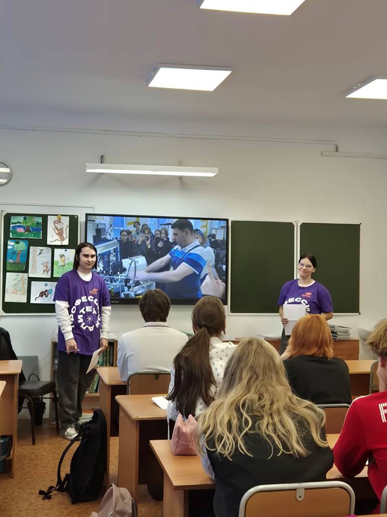 На мероприятии выступали Амбассадоры «Профессионалитета» - студенты, которые рассказали о системе среднего профессионального образования. Ученики узнали о федеральном проекте «Профессионалитет» и о программе «Амбассадоры Профессионалитета». Рассказывали, как работает сотрудничество с предприятиями, где можно пройти практику и лучше подготовиться к будущей работе.