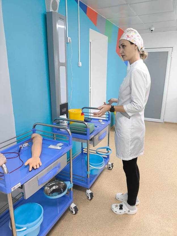 Будущие медицинские сестры и медицинские братья на практике осваивали те манипуляции, являющиеся основой лечебной деятельности терапевтических пациентов: внутривенная инъекция, внутримышечная инъекция. Также, была отработана манипуляция «смена калоприемника» по теме лечебной деятельности при заболеваниях ЖКТ.