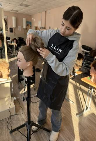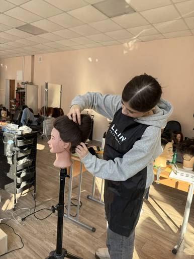 Студентка группы 1811, специальность «Технологии индустрии красоты» Джумаева Нилуфар в рамках подготовки к региональному чемпионату «Профессионалы» отрабатывает конкурсное задание по различным модулям компетенции «Парикмахерское искусство». Отработка проходит в учебной мастерской парикмахеров на манекенах с различной длиной волос.