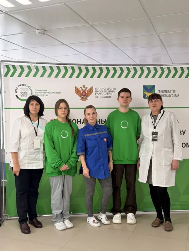 Во Владивостоке подошел к завершению региональный этап Всероссийского чемпионатного движения по профессиональному мастерству «Профессионалы – 2026», компетенции «Лечебное дело». Наш колледж представляют студенты 2 курса специальности Лечебное дело Кормушкина Ксения и Черных Кирилл с преподавателями Грязевой Ольгой Николаевной и Тимофеевой Ольгой Андреевной.