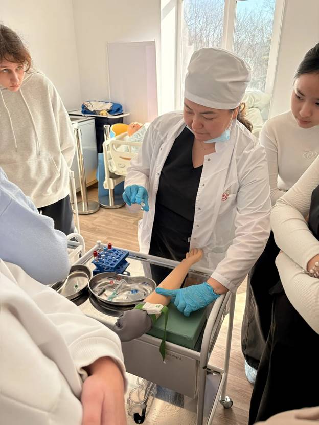 Наши студенты специальности Лечебное дело Черных Кирилл, Степанова Юлия, Германенко Галина и Ким Екатерина совместно с преподавателем Кузнецовой Евгенией Ивановной ознакомили школьников с профессиями «фельдшер» и «медицинская сестра», показали медицинские мастерские колледжа, рассказали об основных правилах подготовки процедурного кабинета к работе и перешли к следующему этапу проведения таких манипуляций, как парентеральное введение лекарственных средств (внутримышечное и внутривенное введение лекарственных средств).