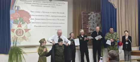 Семьдесят лет исполнилось Российскому Союзу Ветеранов. И на протяжении всех этих лет главная миссия остается неизменной - сохранение памяти о Великой Отечественной войне, её героях, жертвах и о Великой Победе, патриотическое воспитание молодёжи, участие в деятельности международного ветеранского движения за укрепление мира и безопасности народов. Надёжин Виктор Иванович, председатель Приморского регионального отделения Российского Союза Ветеранов в своем обращении акцентировал внимание на важности передачи опыта и знаний молодому поколению, подчеркнув высокие качества современной молодежи и их патриотический настрой.