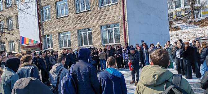 - на месте сбора проводилась перекличка для проверки наличия всех студентов и сотрудников колледжа.