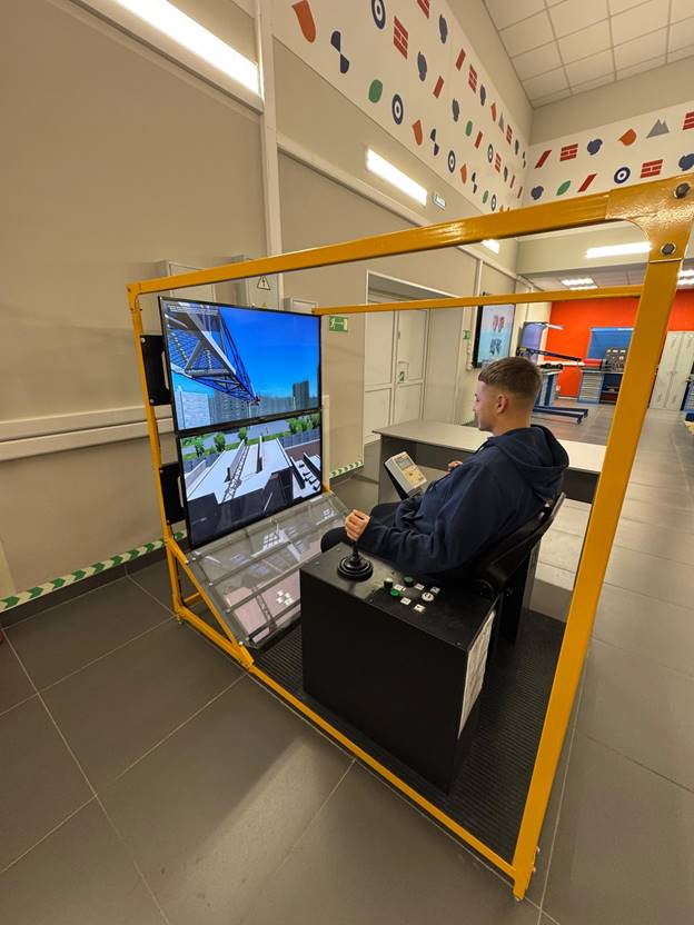 Каждый тренажёр оснащён реалистичной кабиной с подлинными органами управления, панорамным экраном с 3D‑визуализацией рабочей площадки, системой обратной связи, имитирующей физические нагрузки, программным обеспечением для анализа ошибок и оценки результатов. Обучение строилось на принципах поэтапности и рефлексии.