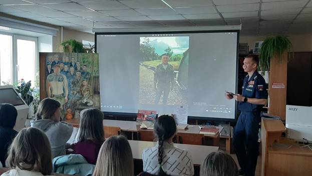 Хорошо знакомый студентам СВОй герой, ветеран боевых действий Евгений Солдайкин принес студентам свою уникальную картину, свою историю и свою боль. Рассказал о переплетении судеб живых и погибших героев, творчества и боли поэзии и прозы жизни. Читали стихи. Размышляли о жизни.