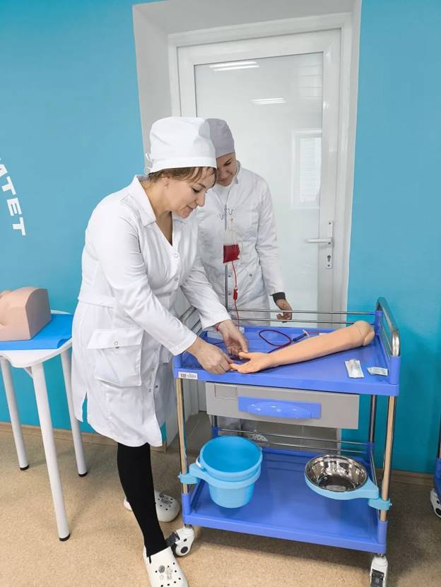 Будущие медицинские сестры и медицинские братья на практике осваивали те манипуляции, являющиеся основой лечебной деятельности терапевтических пациентов: внутривенная инъекция, внутримышечная инъекция. Также, была отработана манипуляция «смена калоприемника» по теме лечебной деятельности при заболеваниях ЖКТ.