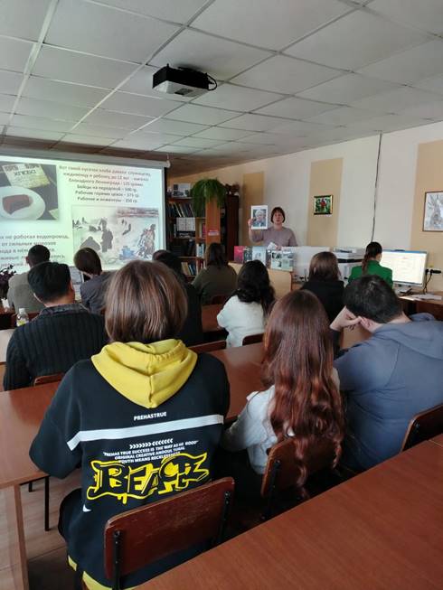 Библиотекари центральной детской юношеской библиотеки побывали в гостях у студентов колледжа. Встреча была посвящена Дню воинской славы России - 27 января, снятию блокады Ленинграда.