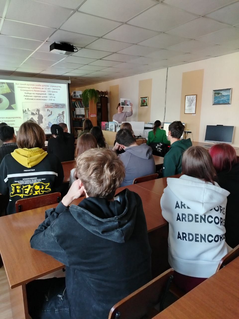 Рассказали молодежи о событиях 1941-1944 гг., о жизни и обороне города, подвигах жителей и военнослужащих.
