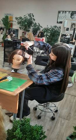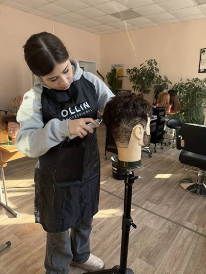 Студентка группы 1811, специальность «Технологии индустрии красоты» Джумаева Нилуфар в рамках подготовки к региональному чемпионату «Профессионалы» отрабатывает конкурсное задание по различным модулям компетенции «Парикмахерское искусство». Отработка проходит в учебной мастерской парикмахеров на манекенах с различной длиной волос.