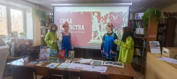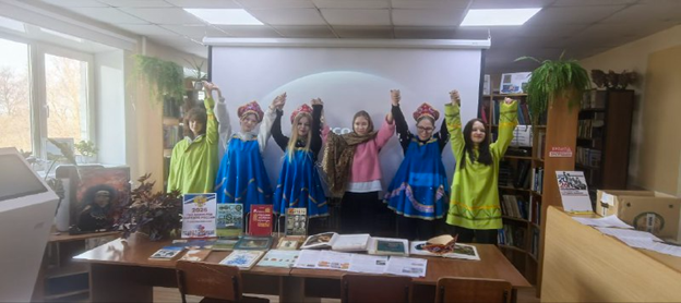 В библиотеке организована выставка тематической литературы. Студенты приняли участие в игровой программе «Однажды в России», где примерили на себя роли жителей разных уголков нашей огромной страны.