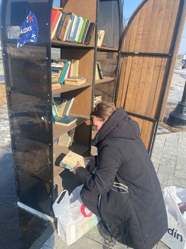 Но это еще не всё! Часть книг теперь "прописалась" в книжных шкафах нашего города — на набережные озера Соленого на Озерном бульваре.