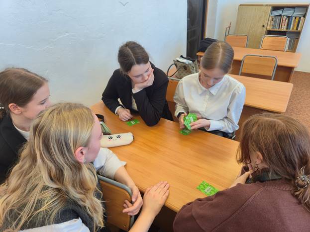 Изучая яркие фрагменты на карточках, ученики приводили примеры с какой профессией ассоциируется картинка, а также узнали о компетенциях чемпионатного движения. Участники фантазировали, общались, делились своими планами по дальнейшему выбору профессионального пути.