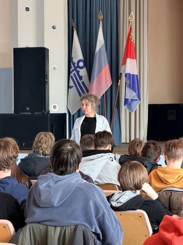 Лекция завершилась на серьёзной ноте: специалист показала ребятам небольшой отрывок из откровенного интервью ребят, отбывающих наказания в исправительном учреждении. Видеоматериал стал мощным эмоциональным акцентом мероприятия и наглядно продемонстрировал, к каким последствиям могут привести необдуманные действия. Студенты получили не просто информацию, а колоссальный стимул задуматься о своём поведении, выборе окружения и ответственности за свои поступки.