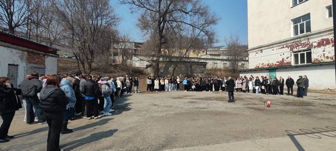 В нашем колледже прошла тренировочная пожарная эвакуация, в которой приняли участие студенты и сотрудники нашего учебного заведения. Мероприятие было организовано с целью повышения уровня пожарной безопасности и отработки чётких действий в случае возникновения чрезвычайной ситуации.