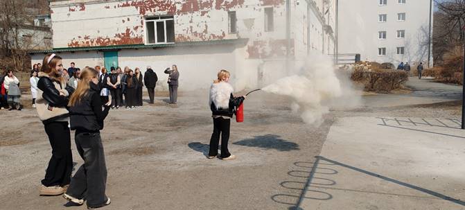 В завершении мероприятия педагог – организатор основ безопасности и защиты Родины провел инструктаж по правильному применению огнетушителя (ОП-4) с условным тушением очага возгорания огнетушителем, все желающие принимали участие в самостоятельном тушении очага возгорания.