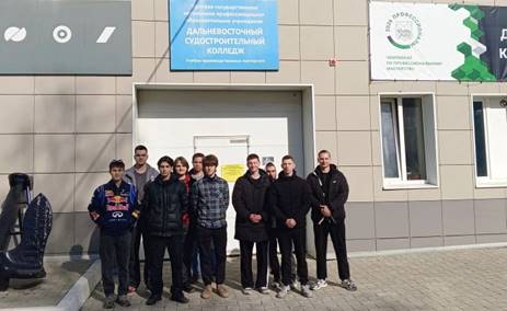 Студенты специальности Сварочное производство посетили экскурсию по мастерским КГА ПОУ «ДВССК» под руководством мастера производственного обучения Детенюка Никиты Александровича. А также посетили ООО ССК «Звезда», где ребятам показали один из производственных цехов, в котором был продемонстрирован путь от металлопроката до готовой секции судна. Для изготовления секции судна в данном цеху представлено большое количество различного современного оборудования. А уже на следующий день студенты изучали и отрабатывали вариативную часть демонстрационного экзамена, который будет проходить на базе КГА ПОУ «ДВССК». Ребята для себя почерпнули много интересной и полезной информации. Следующая точка интереса после производственного цеха – стапель, где секции судна начинают собирать в единую конструкцию. На этом стапеле находится кран «Голиаф», являющийся самым крупным козловым кранов в России.