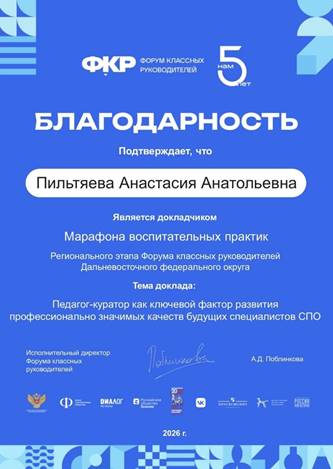 В Хабаровске состоялся Региональный этап форума классных руководителей. В мероприятии участвовали классные руководители и кураторы групп в СПО из 11 регионов Дальневосточного федерального округа.
